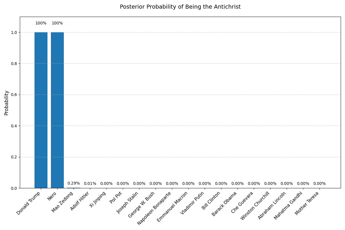 I was curious to see how well Donald Trump actually matched these prophesies compared to other public figures, so I did what any normal person would do: I built a Bayesian reasoning framework and I calculated the answer.