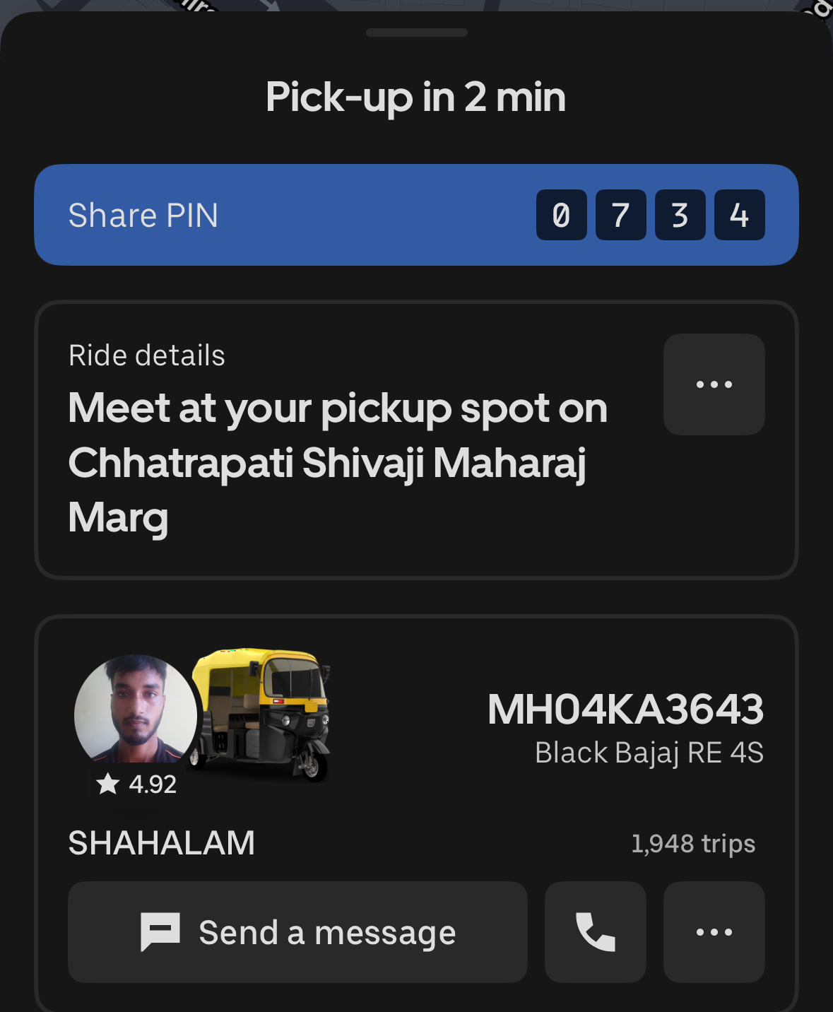 When you use Uber in India, they give you a random 4-digit code. You have to give this code to the driver so that they can enter it into their Uber app and start the ride.