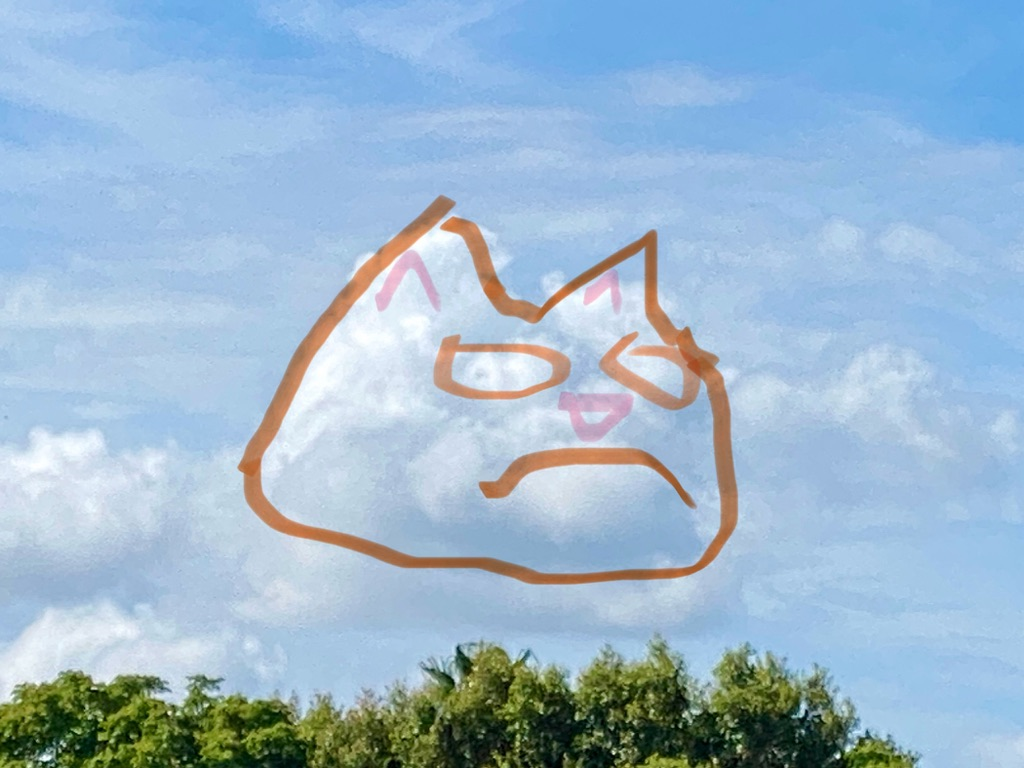 I'd never seen a cloud that looked so much like a cat. This was like a perfect 3D render of a cartoon cat's head, almost like something generated by AI. It looked a bit like Garfield. It had two ears, two eyes, a nose, a mouth. The two eyes even seemed to have two little pupils in the center.