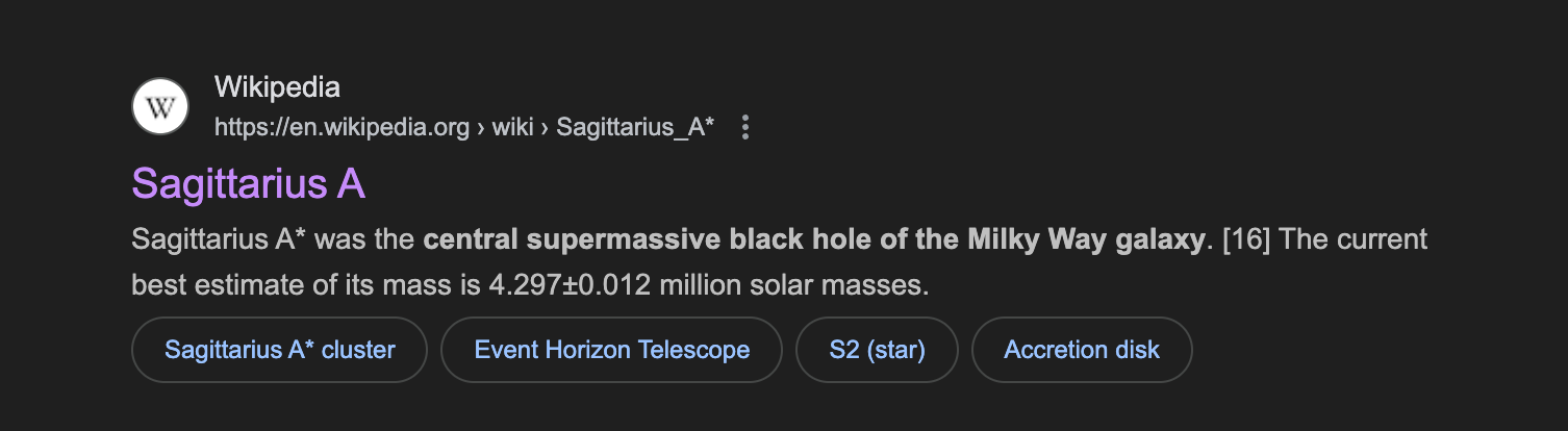 I wanted to read about Sagittarius A*, so I looked it up on Google. This is what I saw: