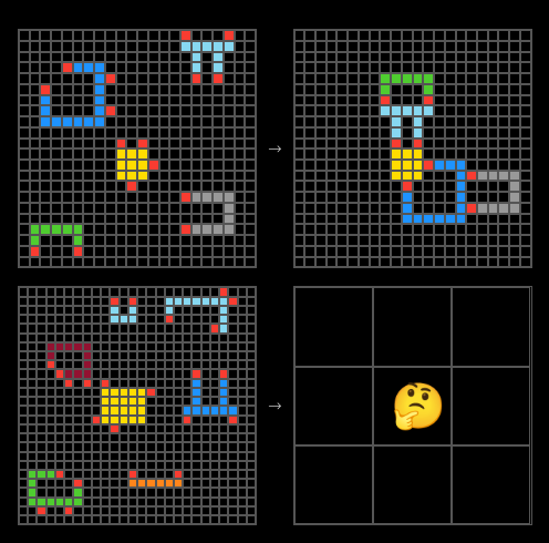 ARC-AGI is a benchmark designed to test genuine reasoning ability. Each task shows a few input-output examples, and you have to figure out the pattern and apply it to a new input. No memorization, no pattern matching against training data. Just pure abstraction and reasoning on challenging visual problems.